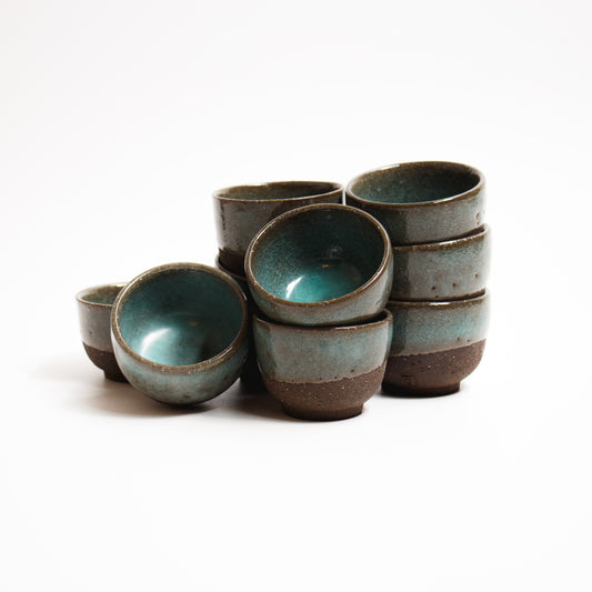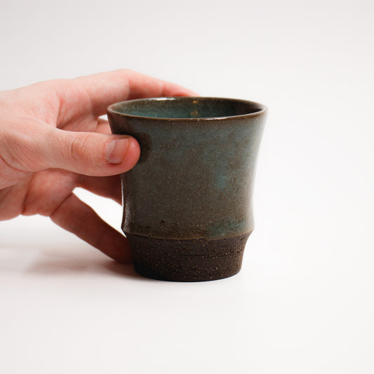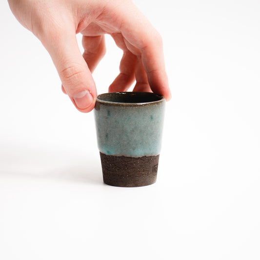 Verre à liqueur, émail celadon tressaillé